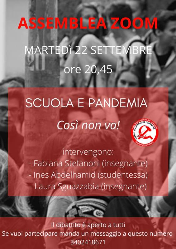 (1) Si veda l’articolo pubblicato sul nostro sito “Riaprire le scuole? Sì, ma non così” www.partitodialternativacomunista.org/articoli/sindacato/riaprire-le-scuole-si-ma-non-cosi
