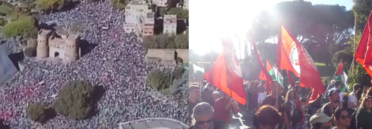 Il Partito di alternativa comunista, sezione italiana della Lit-Quarta Internazionale, ha aderito da subito allo sciopero generale del 22 settembre e, successivamente, ha partecipato allo sciopero generale del 3 ottobre e alla grande manifestazione di Roma del 4 ottobre. Oggi più che mai è necessario costruire la direzione rivoluzionaria internazionale per fermare la capitolazione dei riformisti e smascherare le politiche ambigue delle organizzazioni centriste. E questo rimarrà il nostro più importante compito, fino alla cacciata dei sionisti da tutto il territorio palestinese, dal fiume al mare, per una Palestina libera in un contesto di federazioni socialiste del Medio Oriente, laica, non razzista, dove le minoranze ebraiche non sioniste possano vivere in armonia con la popolazione araba maggioritaria (con il ritorno di tutti i profughi e dei loro figli). Il presupposto è la distruzione dell’entità sionista chiamata «Israele».